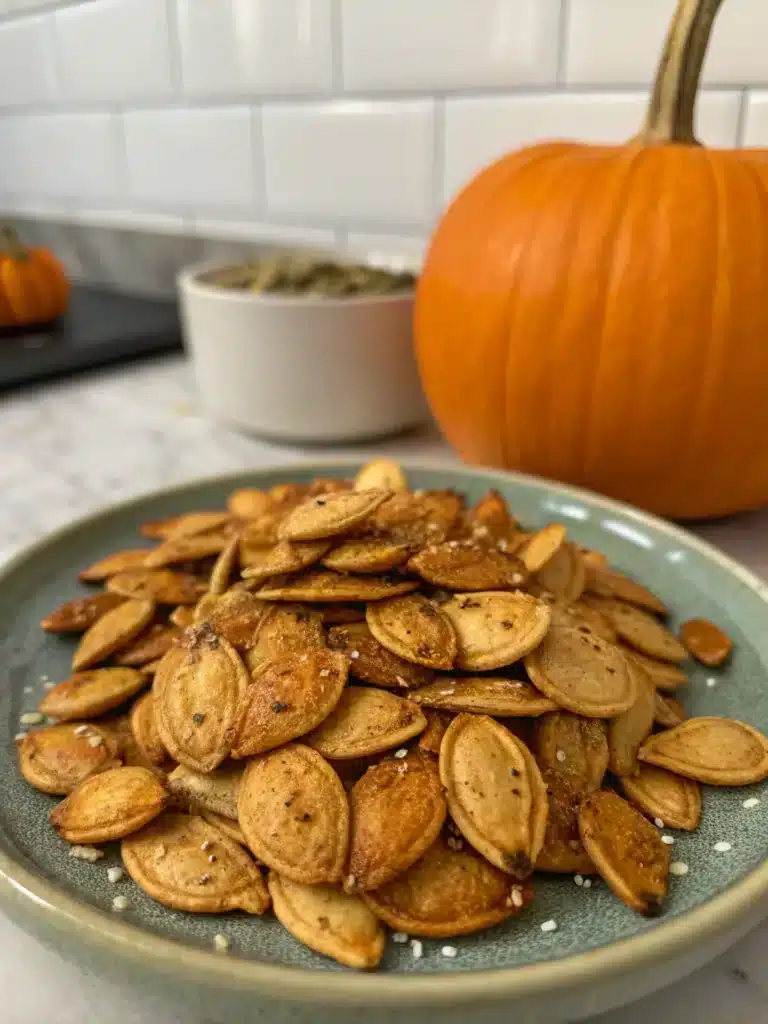 Herbed Garlic Roasted Pumpkin Seeds – Crunchy, Dairy-Free Snack